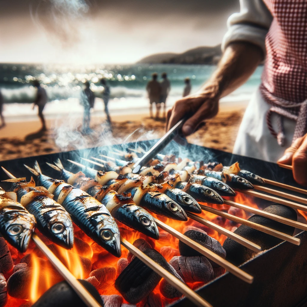 Cómo Saborear y Disfrutar de los Espetos Apreciación Visual    – Observa la presentación del espeto. Las sardinas  deben estar dispuestas en un palo largo y fino, tradicionalmente de caña, y asadas sobre brasas.